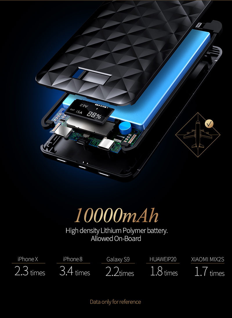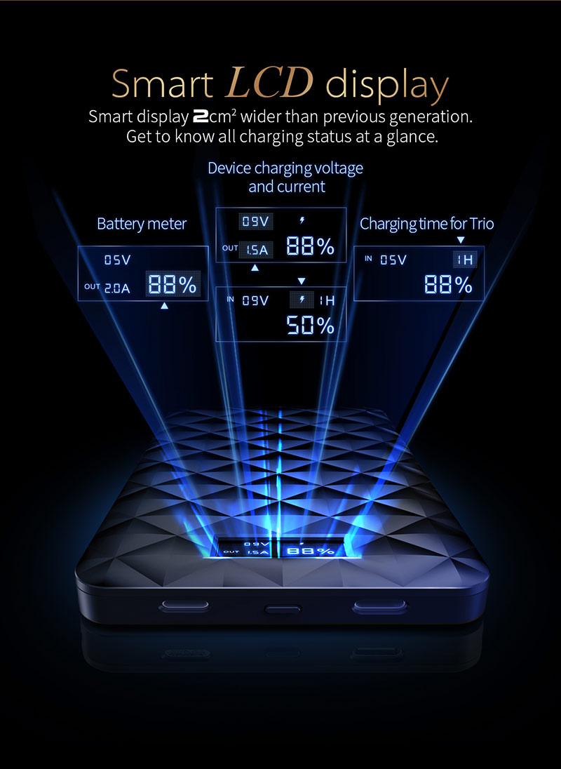 Sạc di động QC tích hợp cáp Lightning, Type-C và màn hình LCD