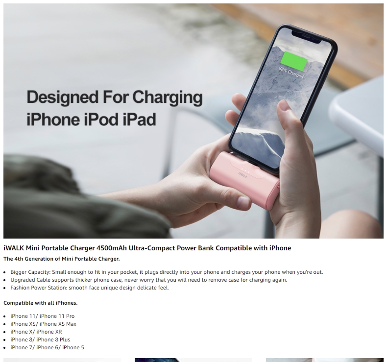 Sạc dự phòng iWALK 4500L tích hợp cổng sạc, dung lượng 4500mAh, siêu nhỏ gọn